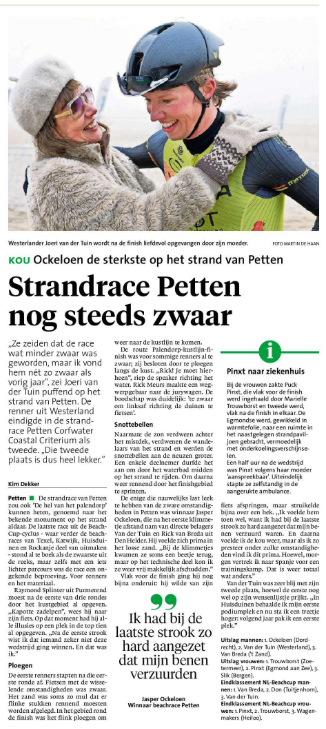 Na zijn uitstekende rijden in de strandrace kon de verslaggever niet om de West-Frisiaan heen. Ook in de krant van maandag kwam Van der Tuin flink aan het woord.